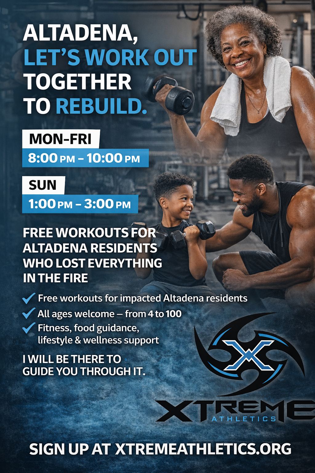 Every Altadena resident who lost their home or was impacted by the fire is invited to participate in FREE wellness training sessions at Xtreme Athletics.